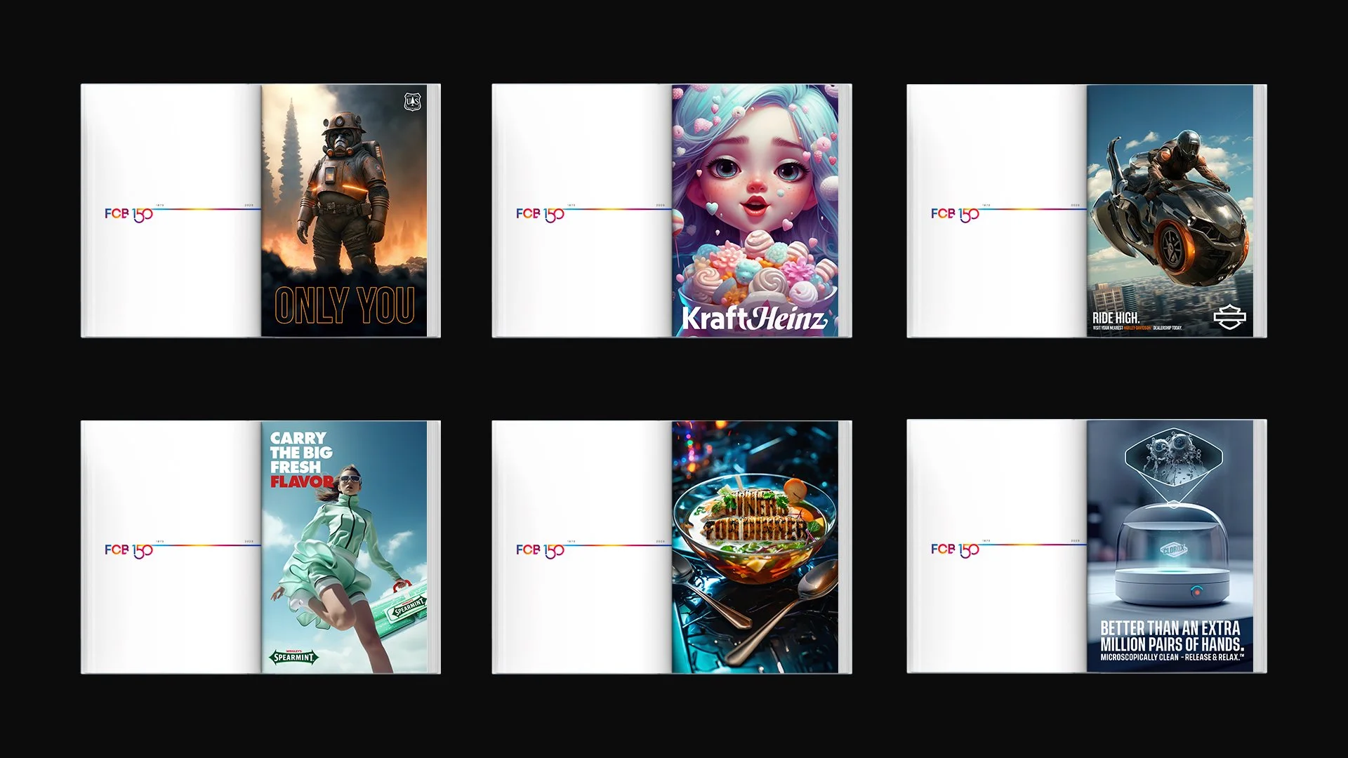 To celebrate the agency’s 150th anniversary, the campaign is inspired by FCB’s motto “Never Finished.” We collected client ads from the past and created new ads using AI image generation, as if they were 150 years in the future.